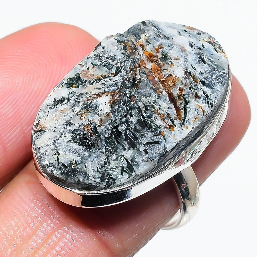 Astrophyllite Stone Mother Art Deco Cluster Elegant Ring Size 8 Sterling Silver