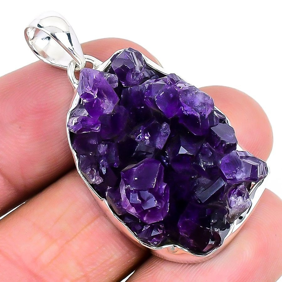 Natural Amethyst Druzy Sterling Silver Channel Set Handcrafted Pendant Jewelry