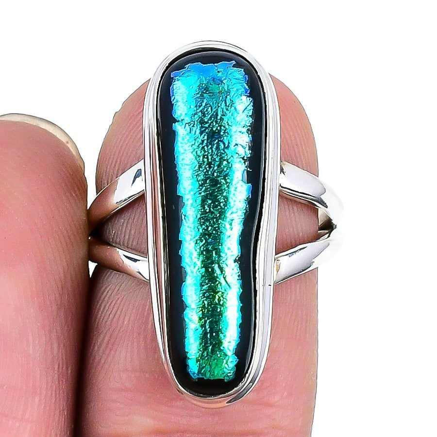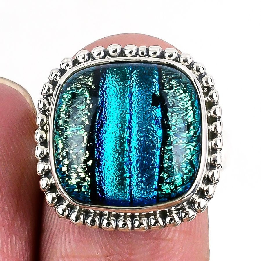 Mexican Dico Glass Gemstone Solid Sterling Silver Statement Ring Jewelry US 7.5