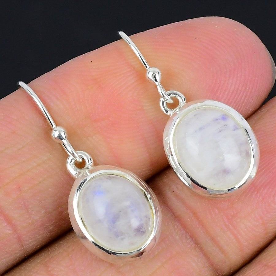 Natural Rainbow Moonstone Dangle Drop Anniversary Hook Earrings 925Ā SolidĀ Silver