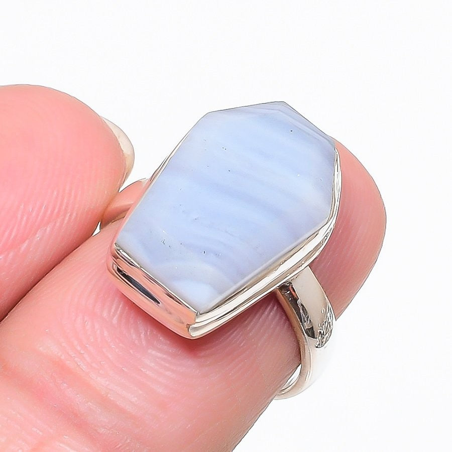 Natural Blue Lace Agate New Statement Wife Ring Jewelry Size 7 Sterling Silver