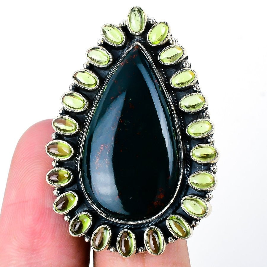 March Bloodstone Gemstone 925 Silver Cluster Anniversary New Ring Jewelry Size 7