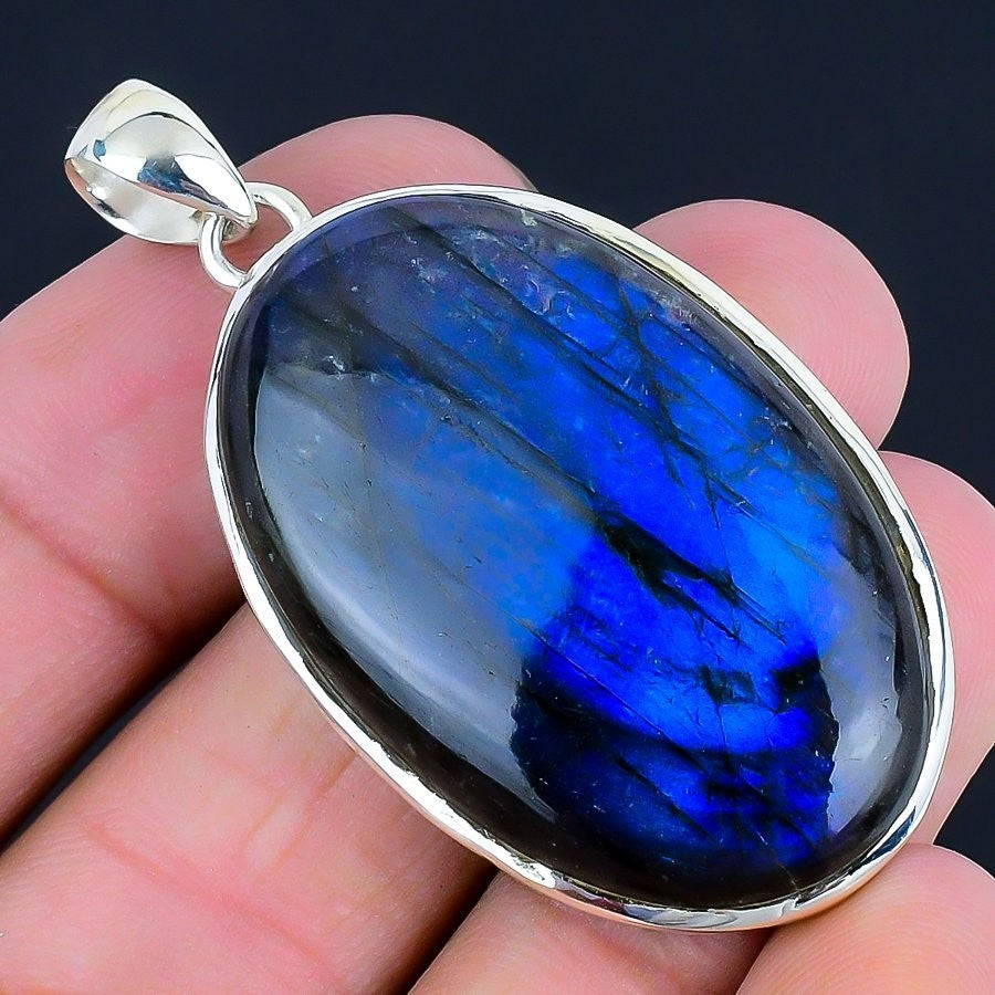 Labradorite Gemstone Sterling Silver Channel Set Third Eye Chakra Sister Pendant