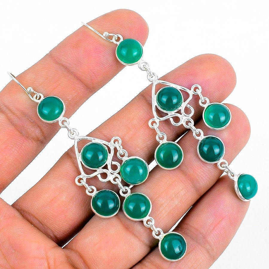 Green Onyx Gemstone 925 Silver Sister New Dangling Elegant Hook Earrings Jewelry