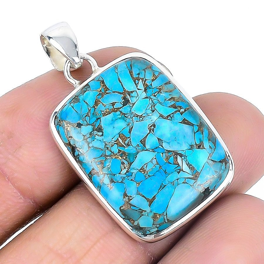 Copper Blue Turquoise Stone Sterling Silver December Daughter Wedding Pendant