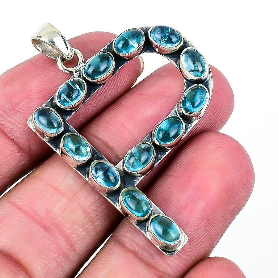 Natural Blue Tourmaline Sterling Silver Wife Art Deco Artisan Pendant Jewelry