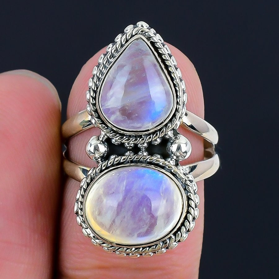 Natural Moonstone Sterling Silver Daughter Statement Elegant Ring Jewelry US 7