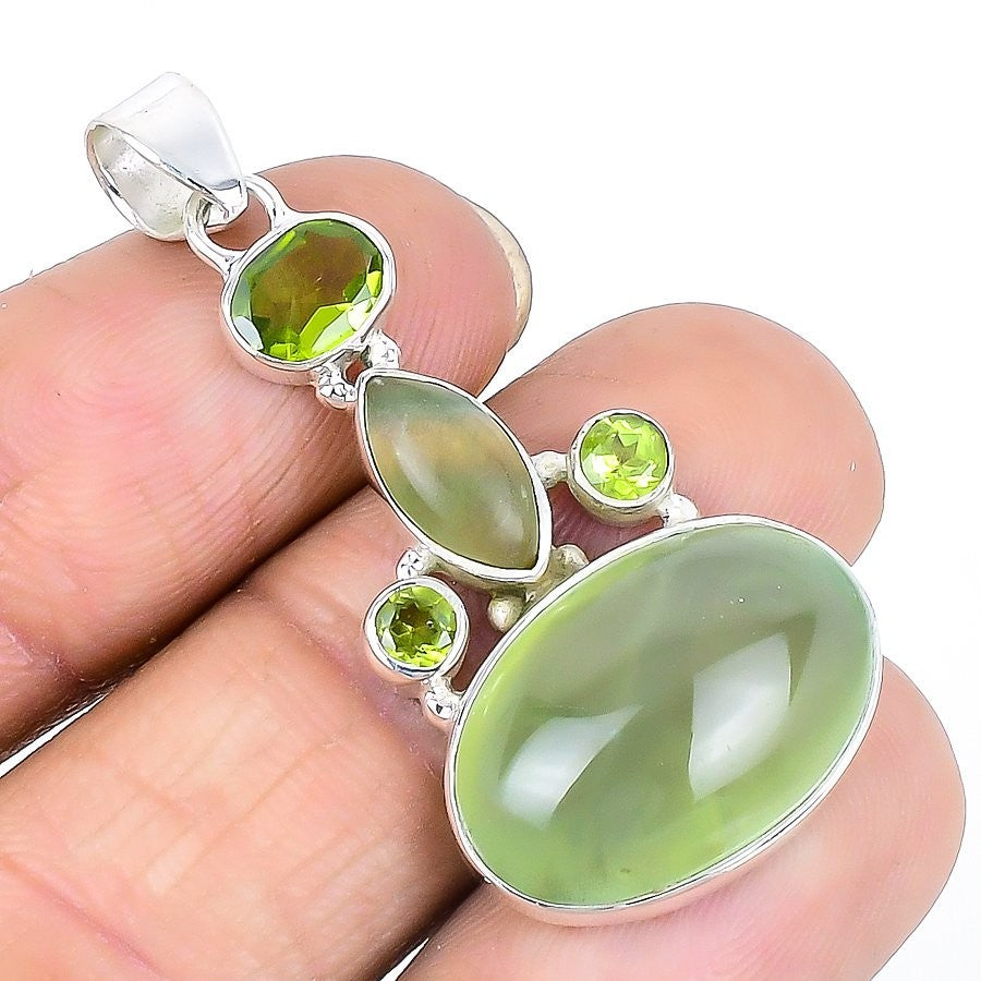 Prehnite Stone 925 Silver Daughter Art Deco Trendy Elegant New Pendant Jewelry