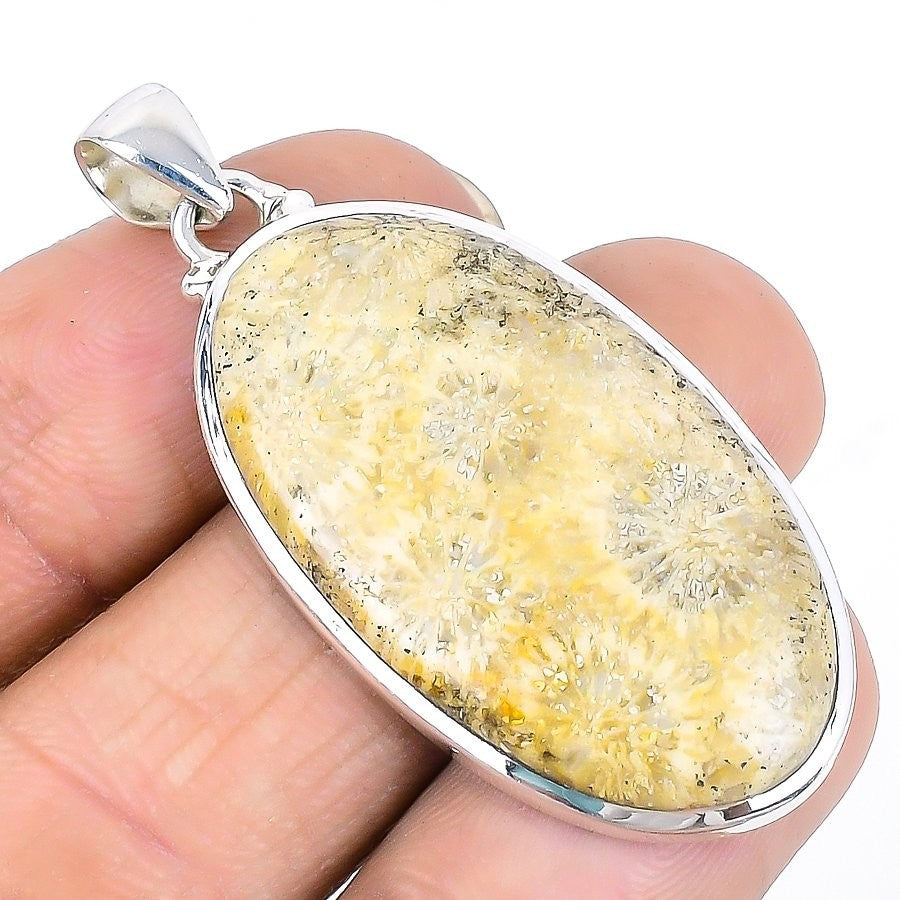 Fossil Coral Gemstone 925 Sterling Silver Boho Sister Handcrafted Ethnic Pendant