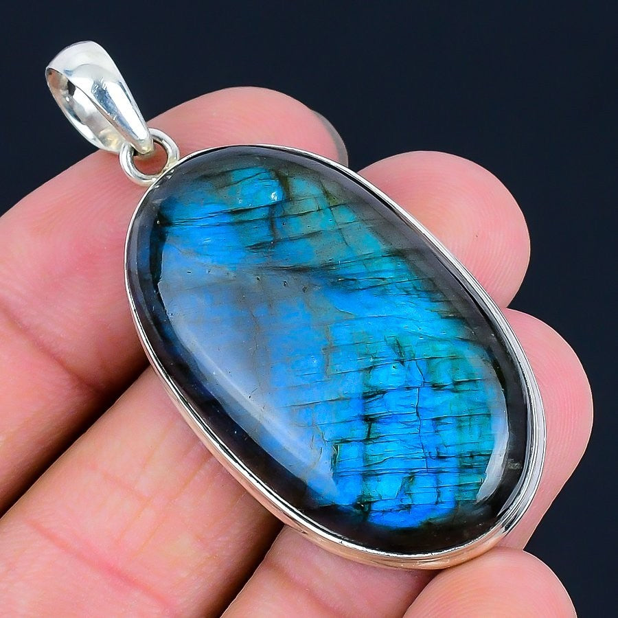 Third Eye Chakra Natural Labradorite 925 Sterling Silver Bezel Sister Pendant