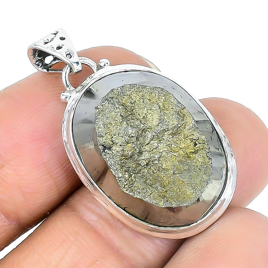 Natural Pyrite Druzy 925 Sterling Silver Birthday Wedding Boho Pendant Jewelry