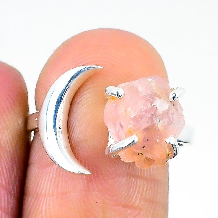 Rose Quartz Stone Solid Sterling Silver Statement Engagement Wedding Ring US 7.5