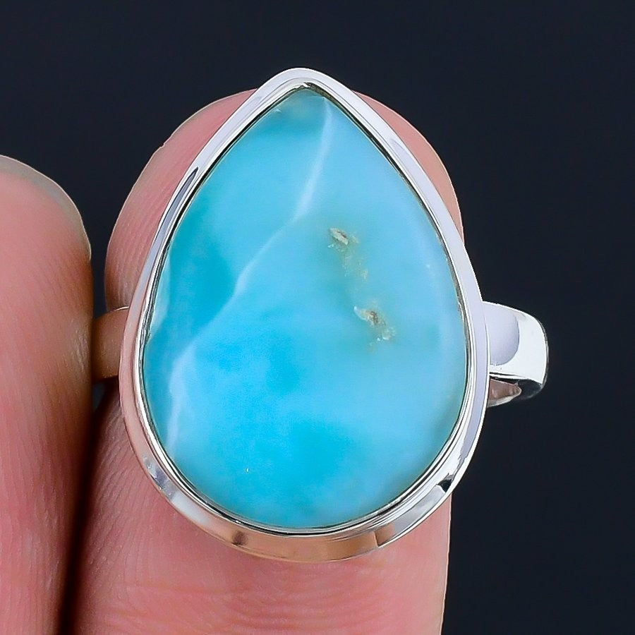 Natural Larimar Solid Silver Statement Bezel Best Daughters Gift New Ring Size 9