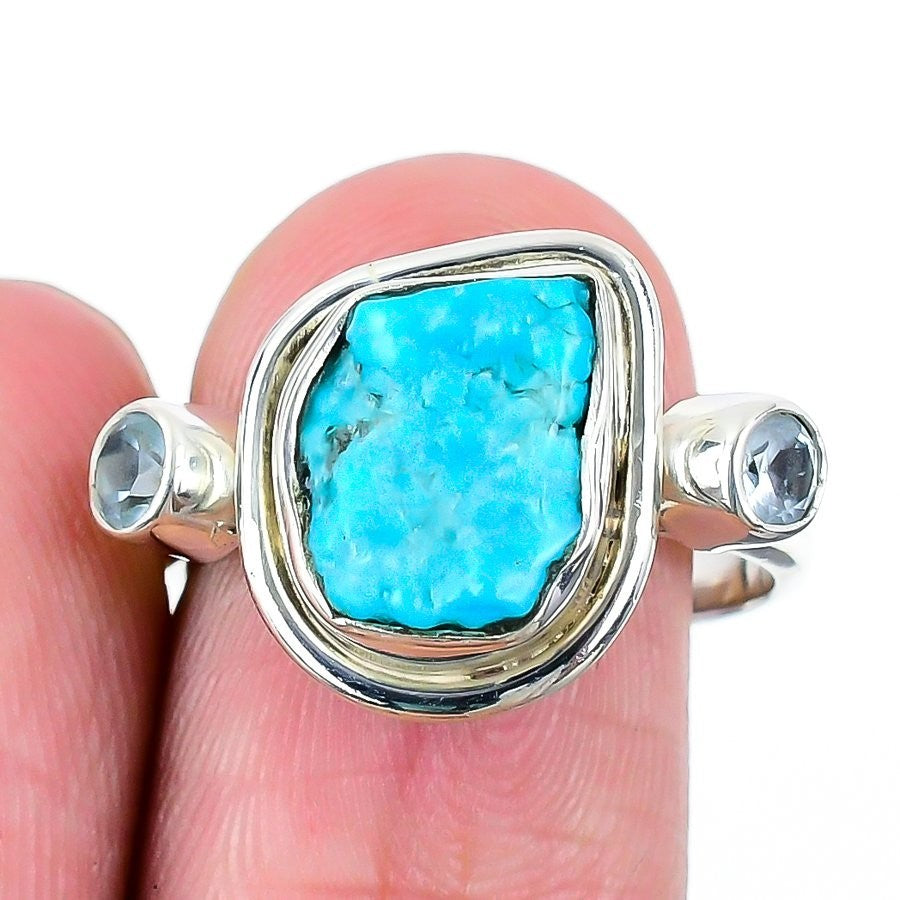 Arizona Turquoise Gemstone Solid Silver Statement Birthday Ring Jewelry Size 8.5