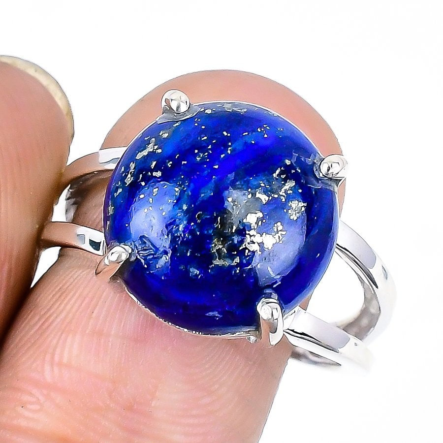 Natural Lapis Lazuli Solid Silver Mother Elegant Statement Wedding Ring Size 10