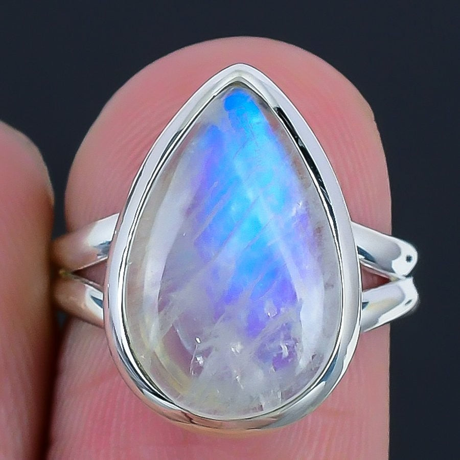 Natural rainbow Rainbow Moonstone Sterling Silver Cluster Ring Jewelry Size 6