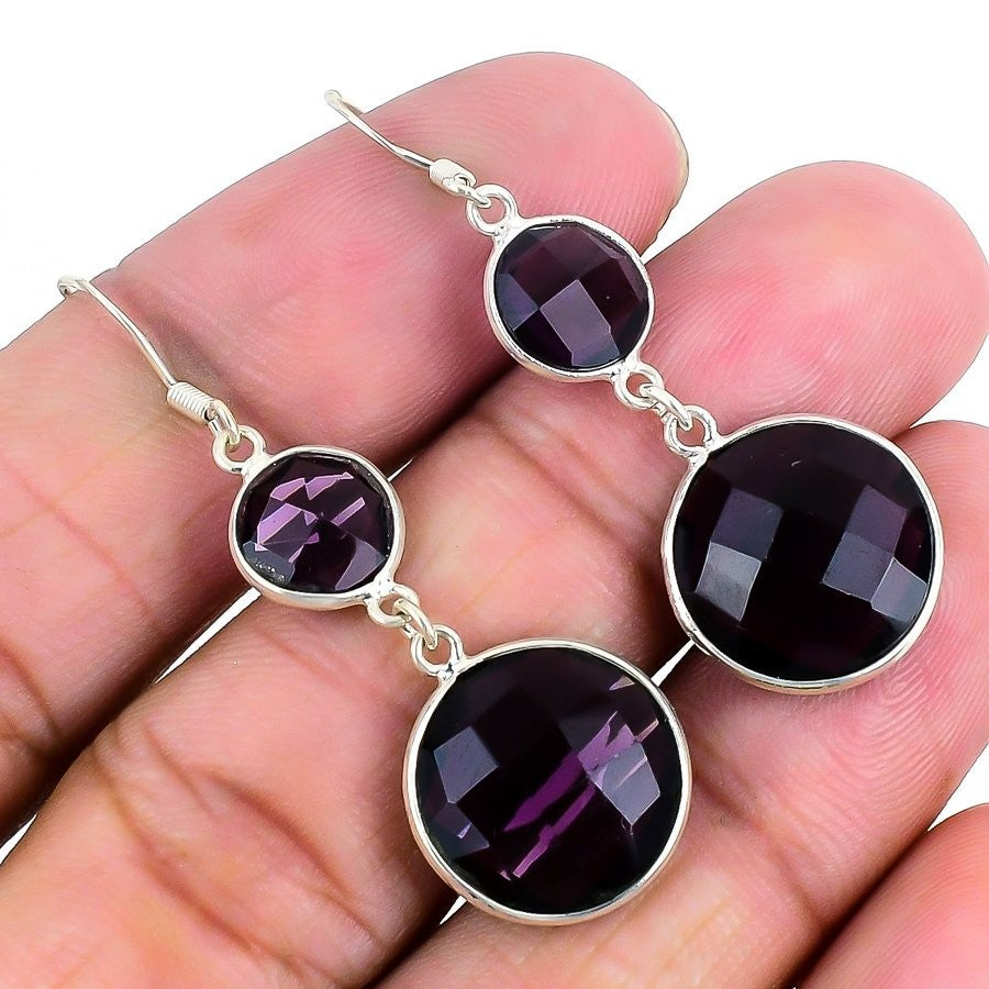 Natural Amethyst Treated 925 Sterling Silver New Dangling Daughter Gift Earrings