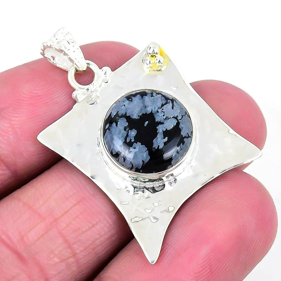 Daughters Day Sale Natural Snoflake Obsidian Elegant Pendant Jewelry 925 Silver