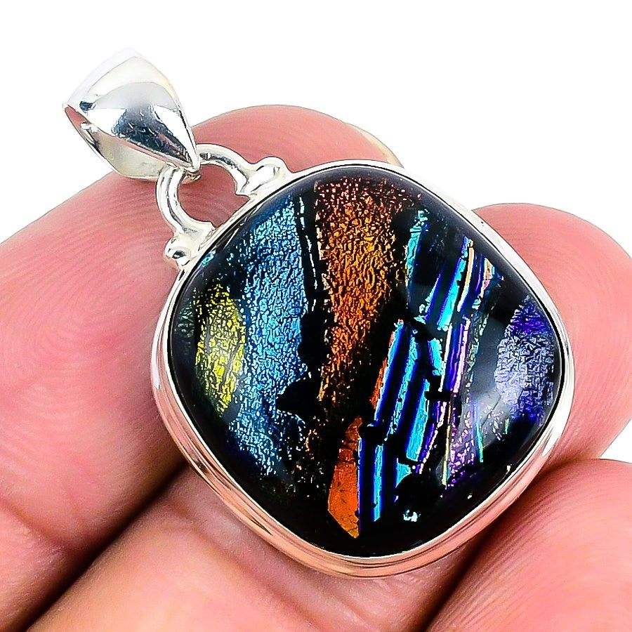 Natural Mexican Dico Glass Wedding Engagement Artisan Pendant Sterling Silver
