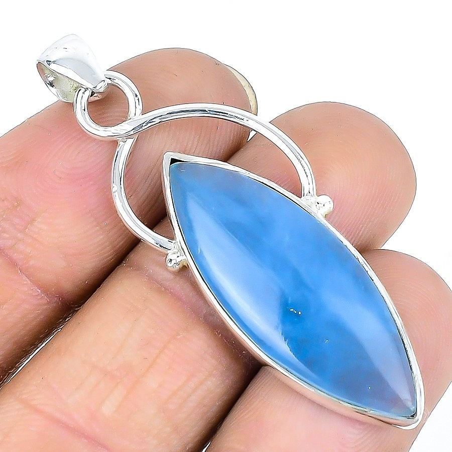 Third Eye Chakra Blue Lace Agate Stone 925 Silver Anniversary Pendant Jewelry
