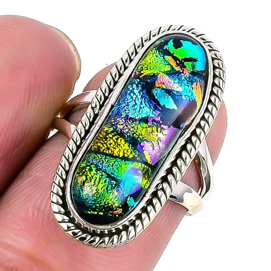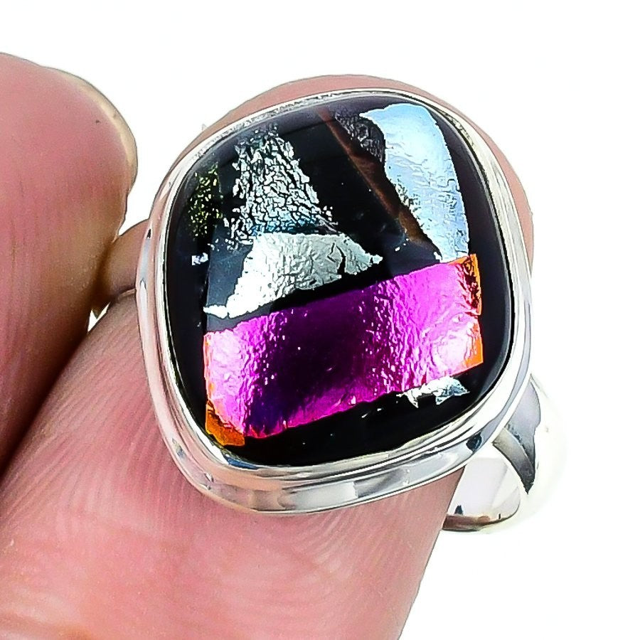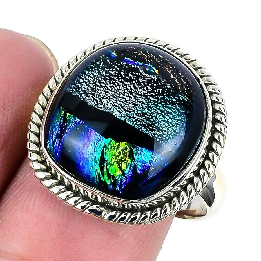 Mexican Dico Glass Stone Solid Silver Unique Cluster Trendy Elegant Ring Size 6
