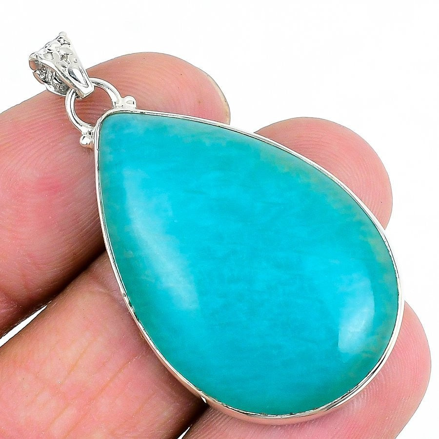 Amazonite Stone Solid Silver Trendy Bezel Engagement Daughters Day Wife Pendant