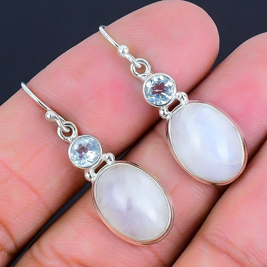 Rainbow Moonstone Gemstone Sterling Silver Mother Drop Dangle Earrings Jewelry