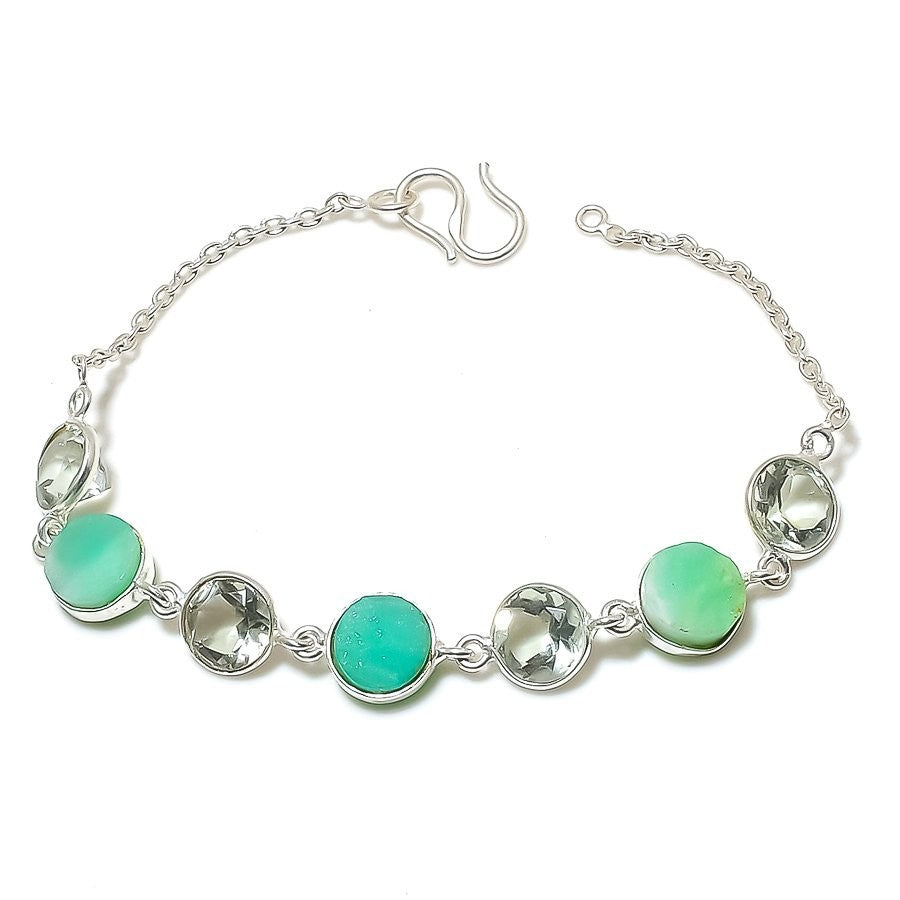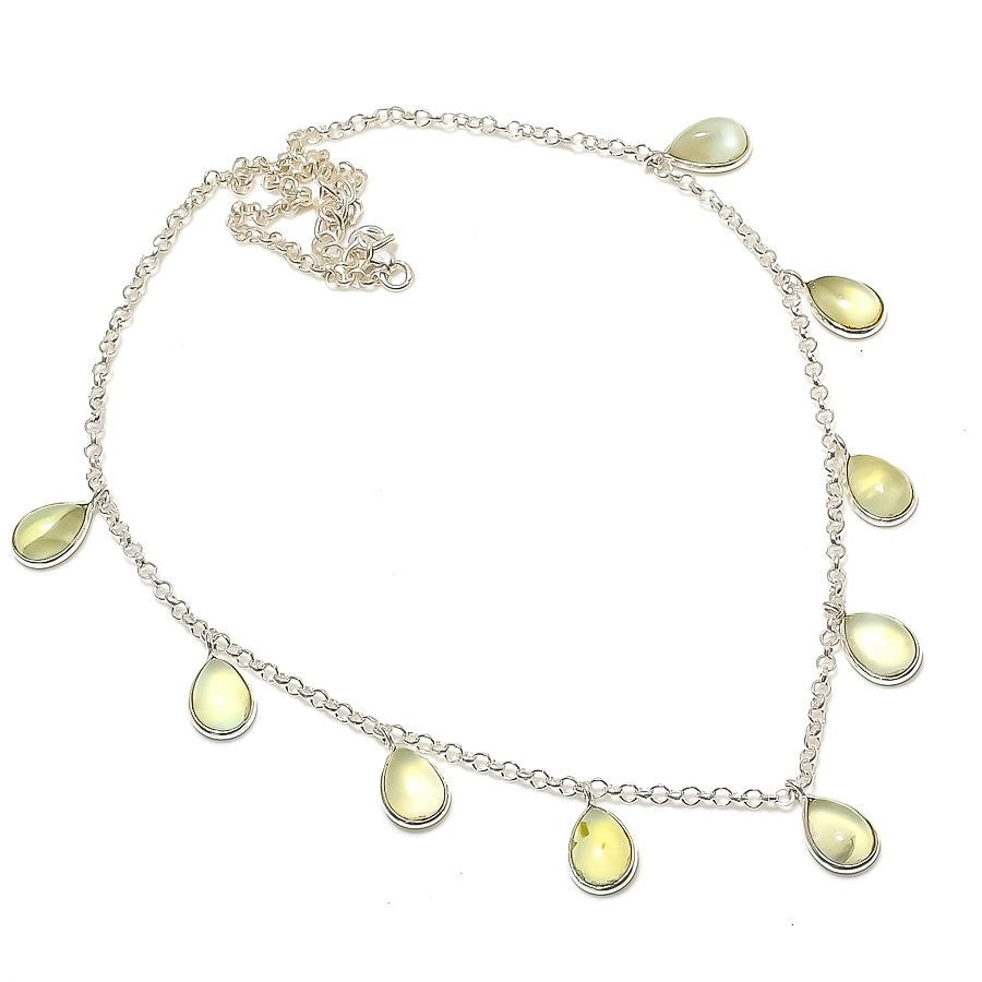 Natural Prehnite 925Ā SolidĀ Silver Chain Artisan Engagement Wife Wedding Necklace