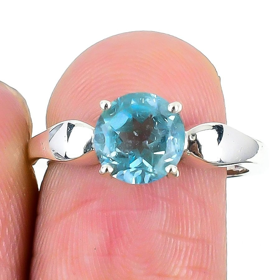 Blue Chalcedony Faceted Gemstone Statement Mother Ring Jewelry Size 7 925 Silver
