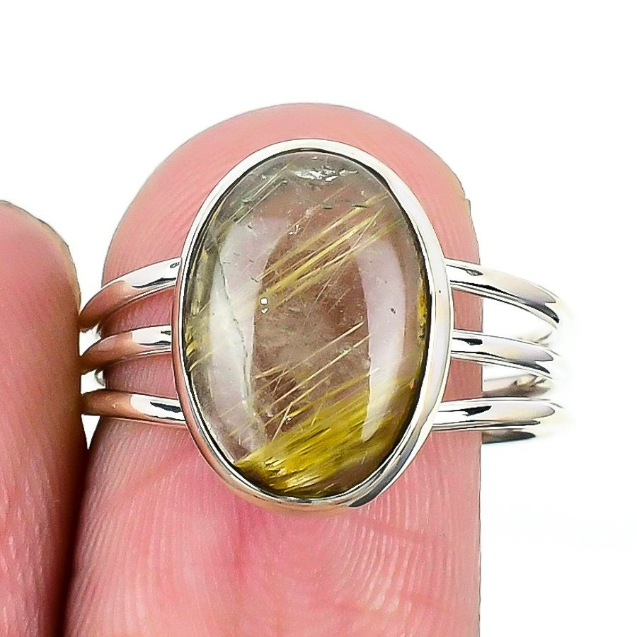 Golden Rutile Stone 925 Silver Wife Birthday Cluster Boho Ring Jewelry Size 8.5