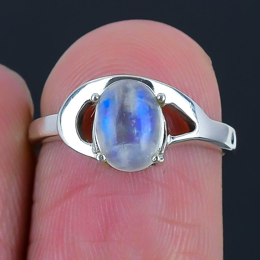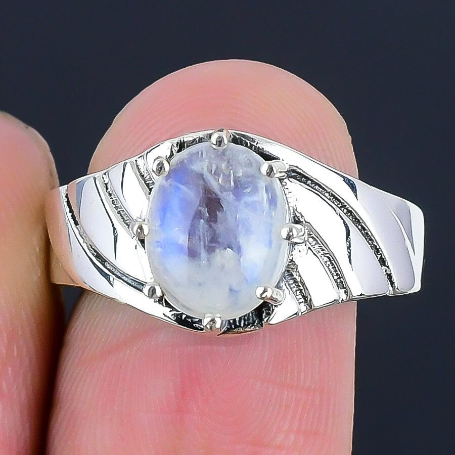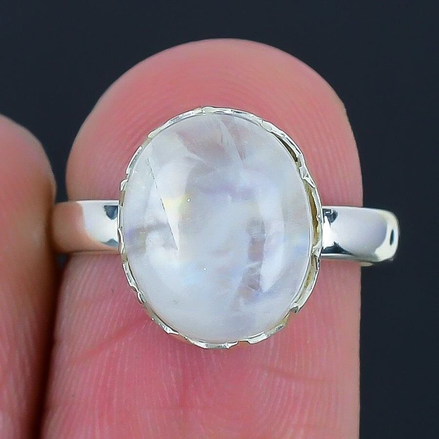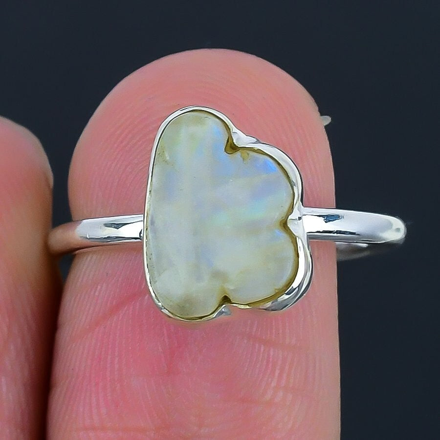 Rainbow Rainbow Moonstone Stone Handmade Trendy Cluster Ring Size 8 Solid Silver