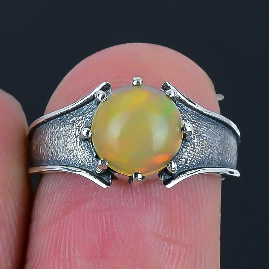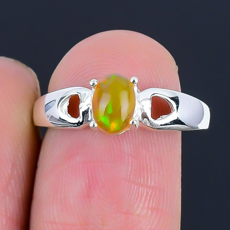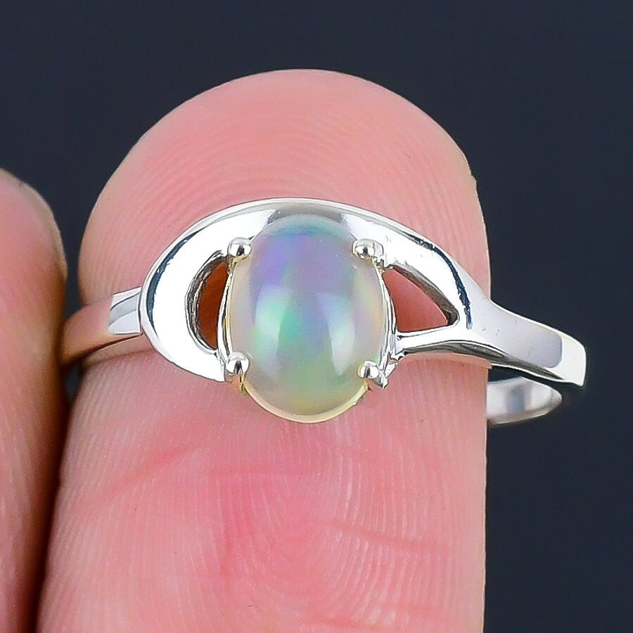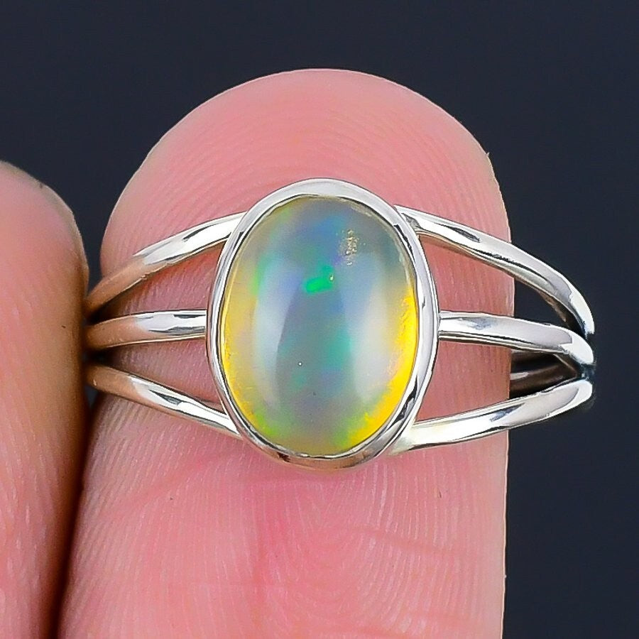 Ethiopian Opal Stone Solid Silver Memorial Day Unique Cluster New Ring Size 7