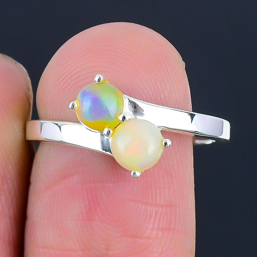 Ethiopian Opal Stone 925 Sterling Silver Unique Cluster Daughter Ring Jewelry