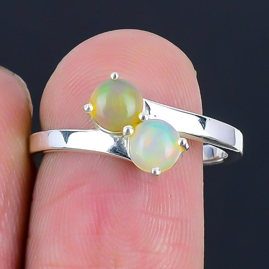 Ethiopian Opal Stone Cluster Trendy Boho Ring Jewelry Size Adjustable 925 Silver