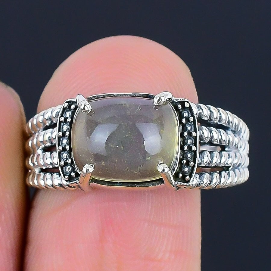 Natural Milky Opal Sister Cluster Birthday Boho Ring Jewelry Size 9 Solid Silver