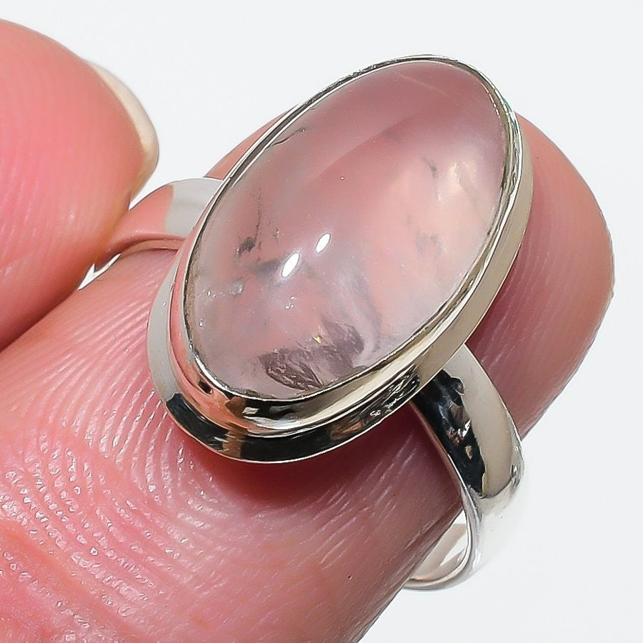 Rose Quartz Gemstone 925 Sterling Silver Statement Birthday Sister Ring US 9.5