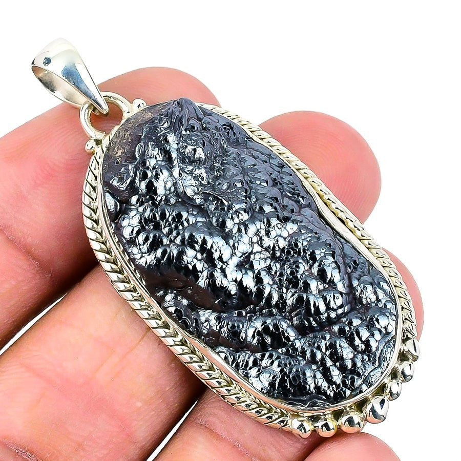 Shungite Stone Sterling Silver Wife Anniversary Handmade Wedding Pendant Jewelry