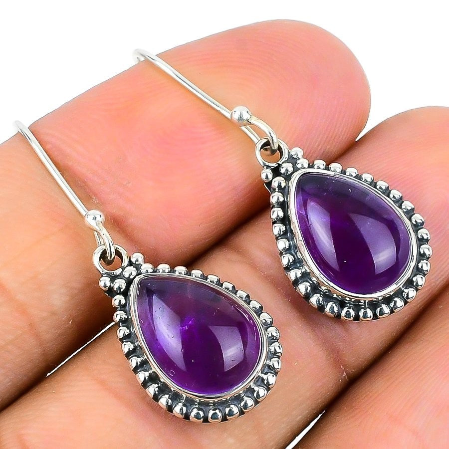 Sage Amethyst Gemstone Solid Sterling Silver Drop Sister Hook Birthday Earrings