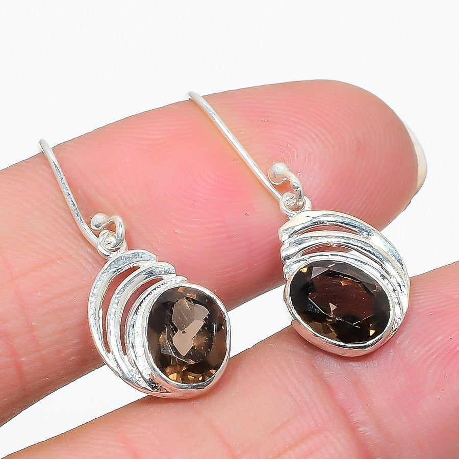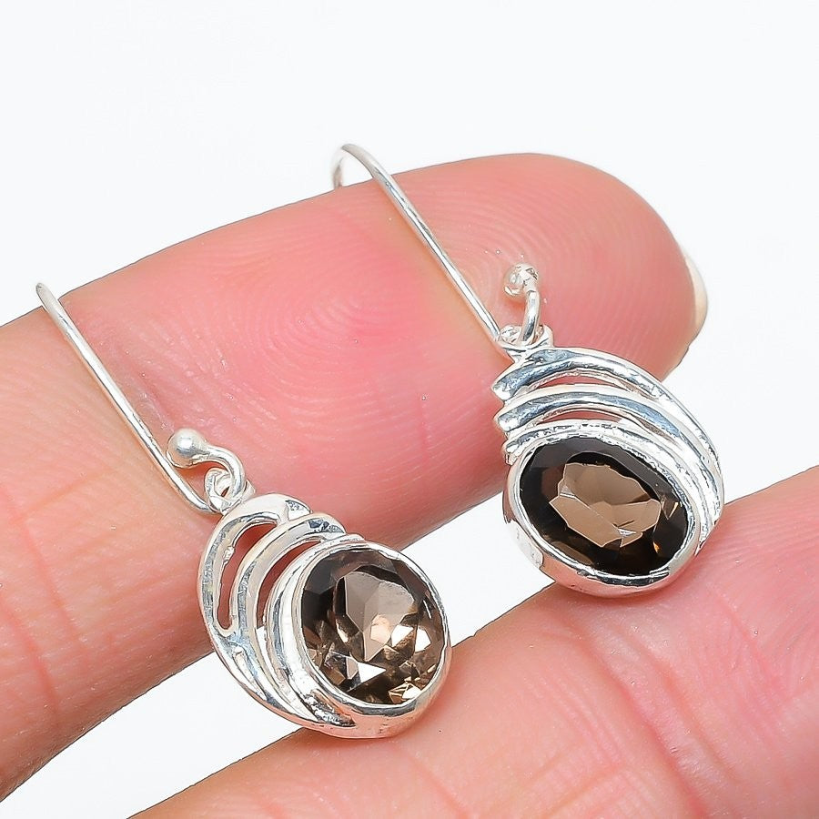 Smoky Topaz Gemstone 925 Silver Daughters Day Art Deco Dangling Wife Earrings