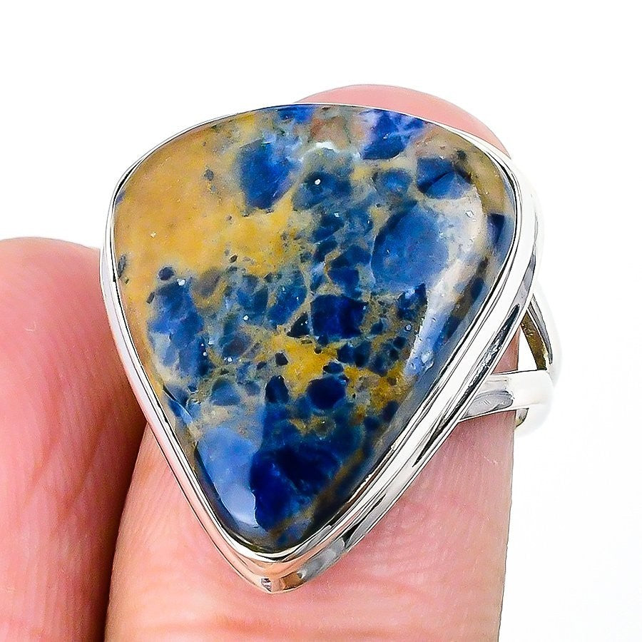 Sodalite Gemstone Sterling Silver Handcrafted Artisan Cluster Wife Ring Size 7