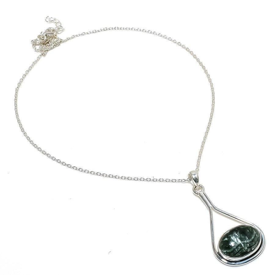 Seraphinite Gemstone Sterling Silver Trendy Chain Elegant Wife Unique Necklace