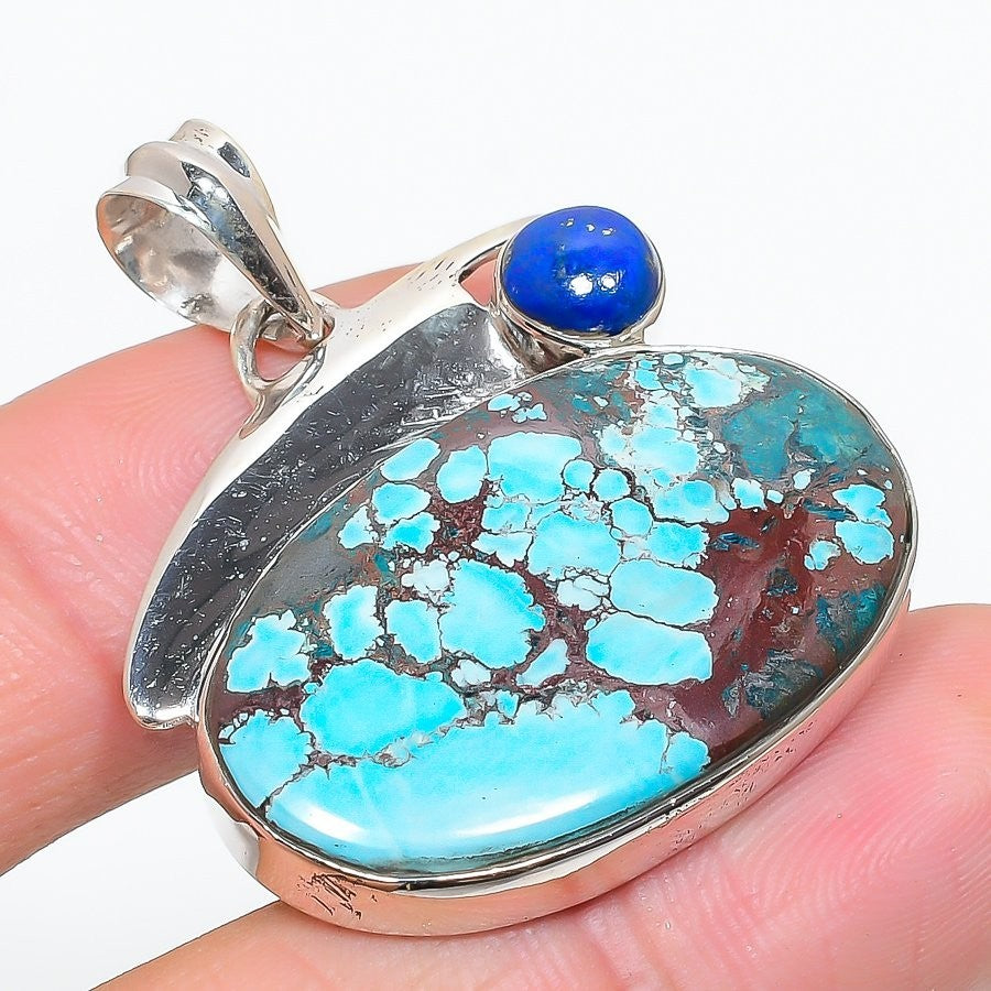 Tibetan Turquoise Gemstone Sterling Silver Unique Ethnic Wedding Pendant Jewelry