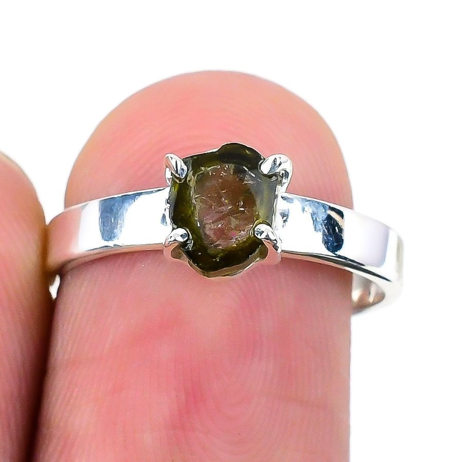 Watermelon Tourmaline Stone Solid Sterling Silver Statement Ring Jewelry Size 8