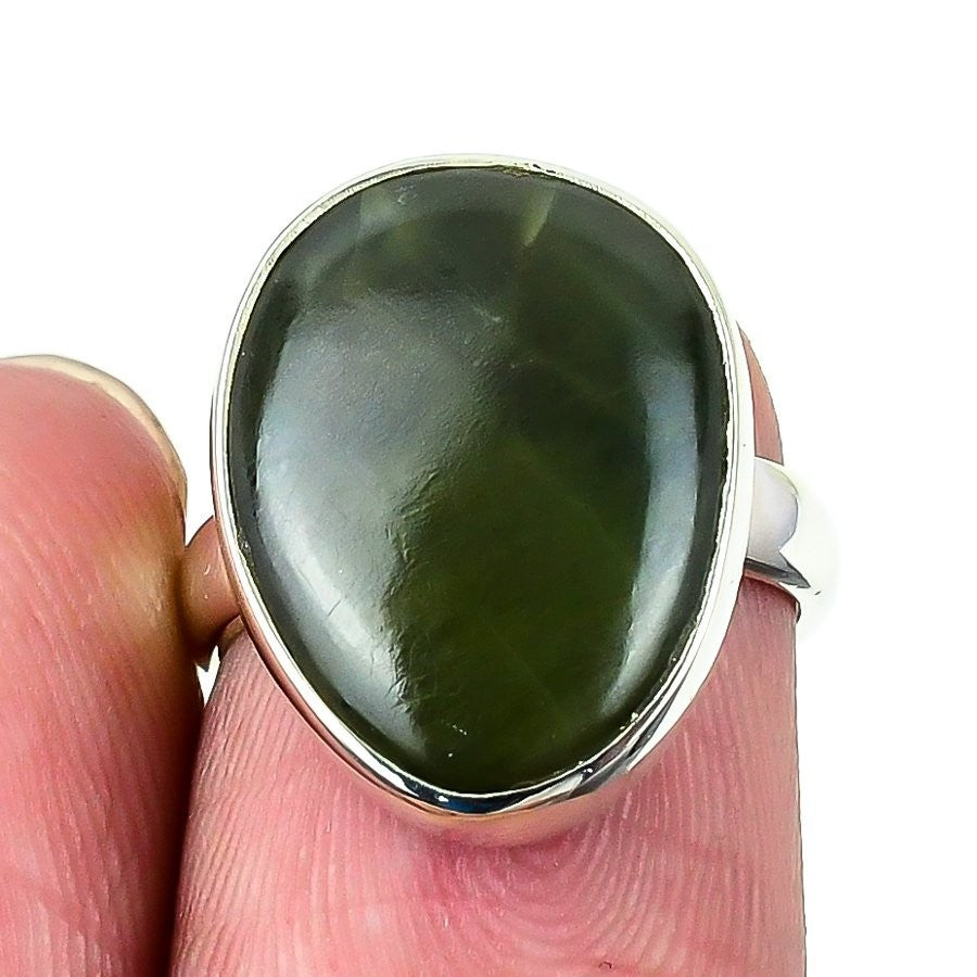 Natural Snoflake Obsidian 925Ā SolidĀ Silver Wedding Statement Mother Ring Size 7