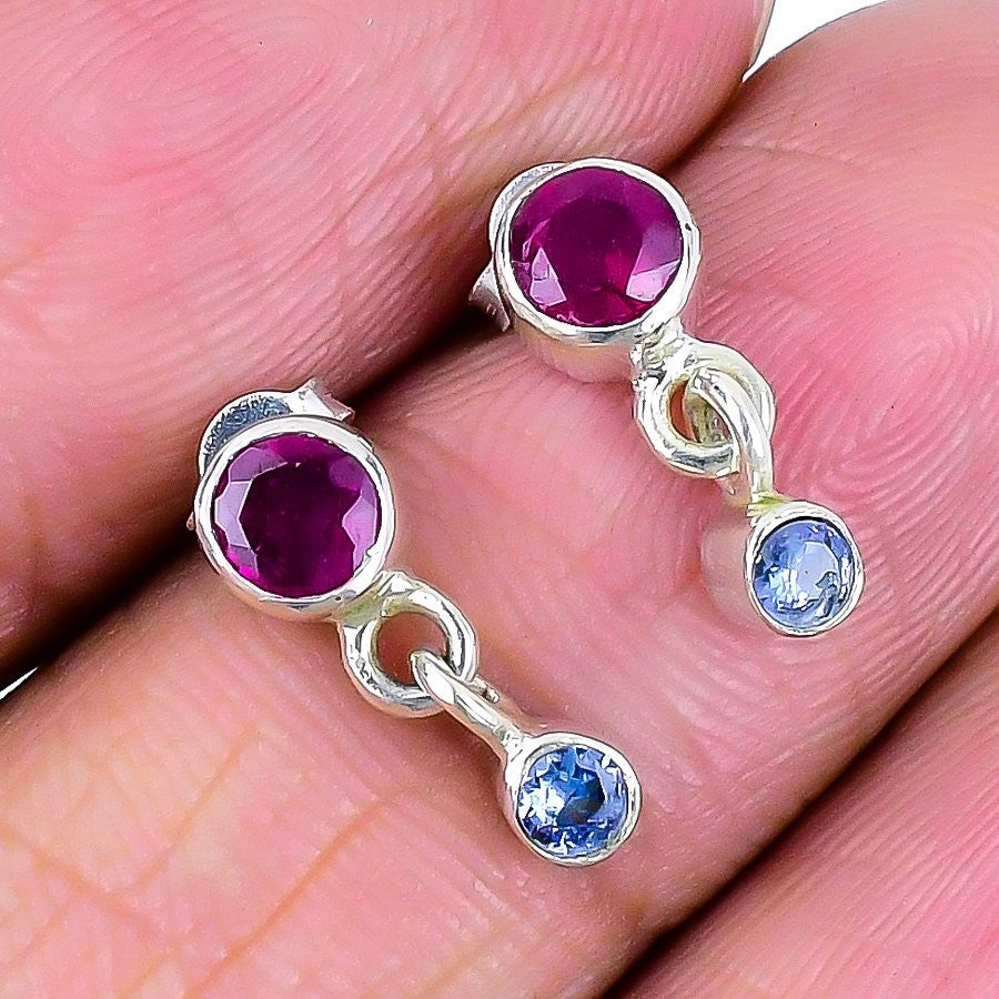 Kashmir Red Ruby Gemstone Solid Silver Stud Post Best Daughters Gift Earrings