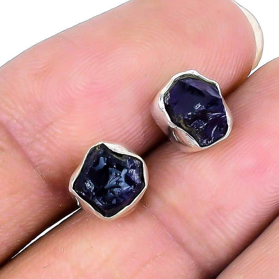 Natural Amethyst Druzy 925 Silver Wife Stud Best Daughters Gift Earrings Jewelry