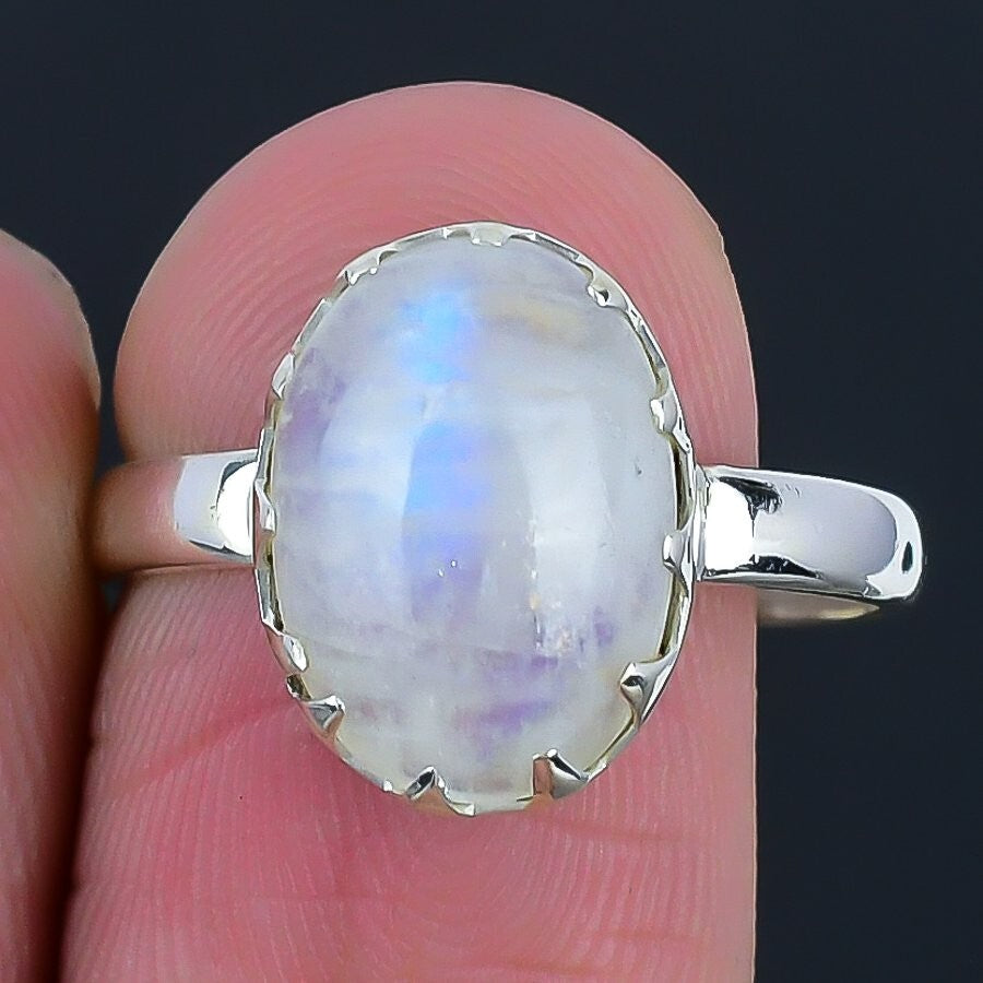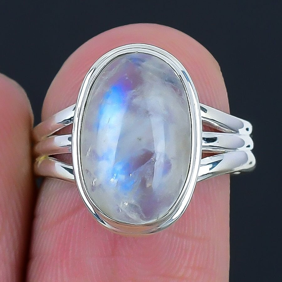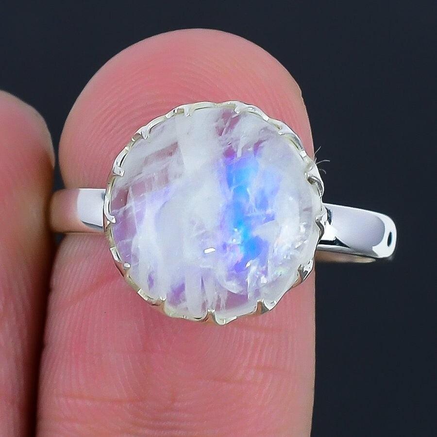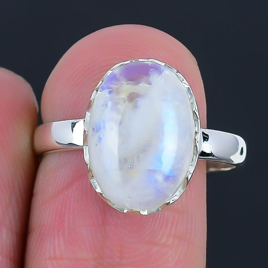 Rainbow Rainbow Moonstone Gemstone Wife Cluster Birthday Ring Size 8 925 Silver