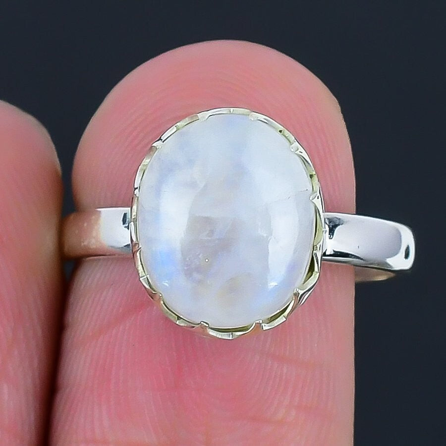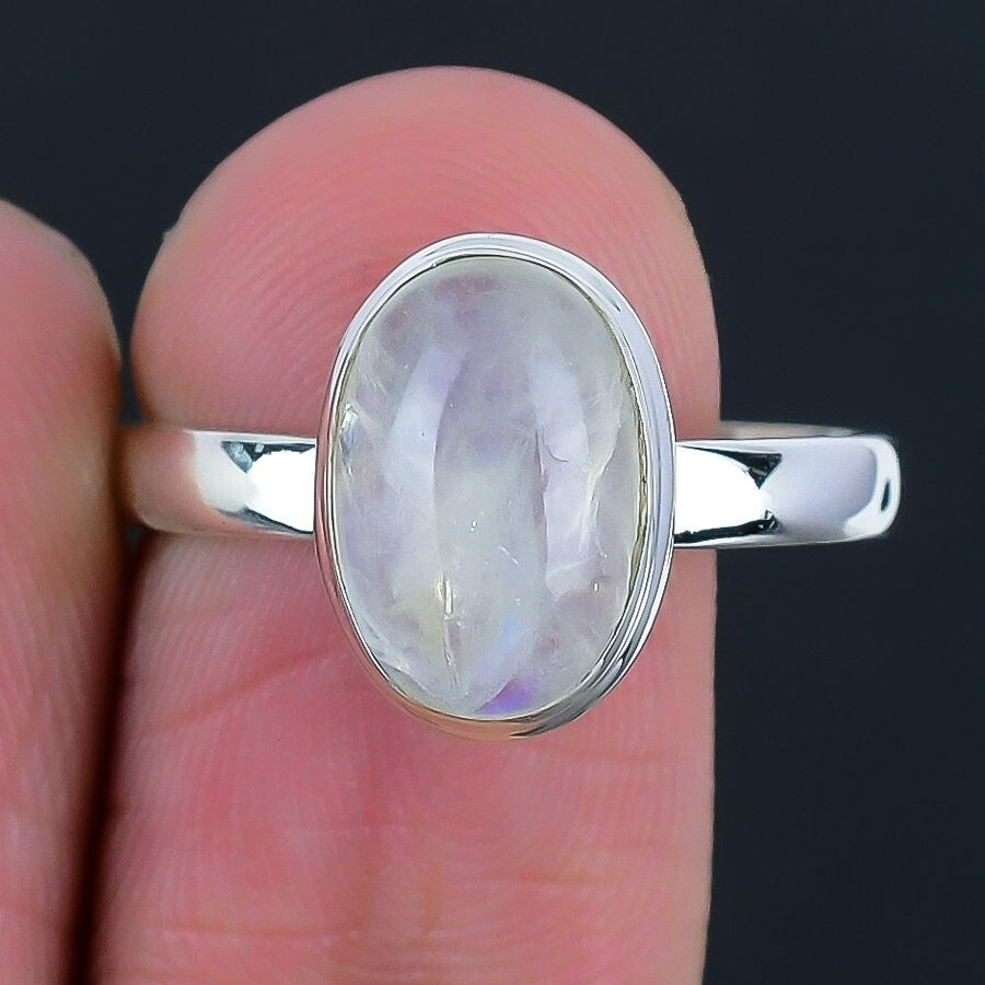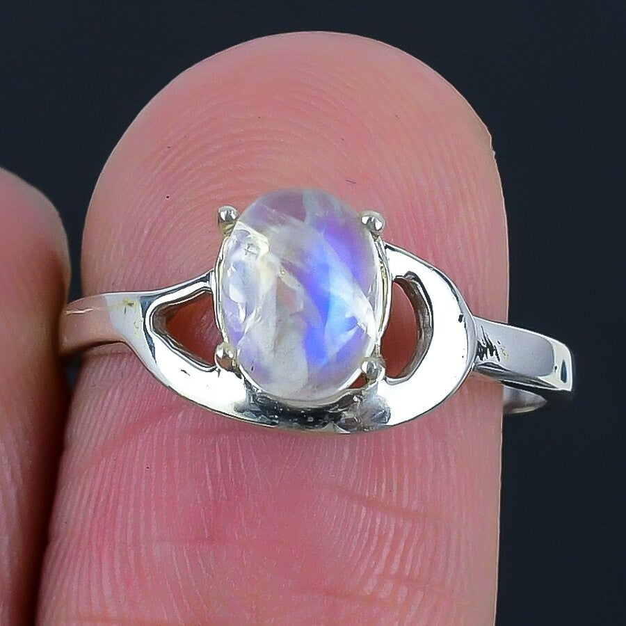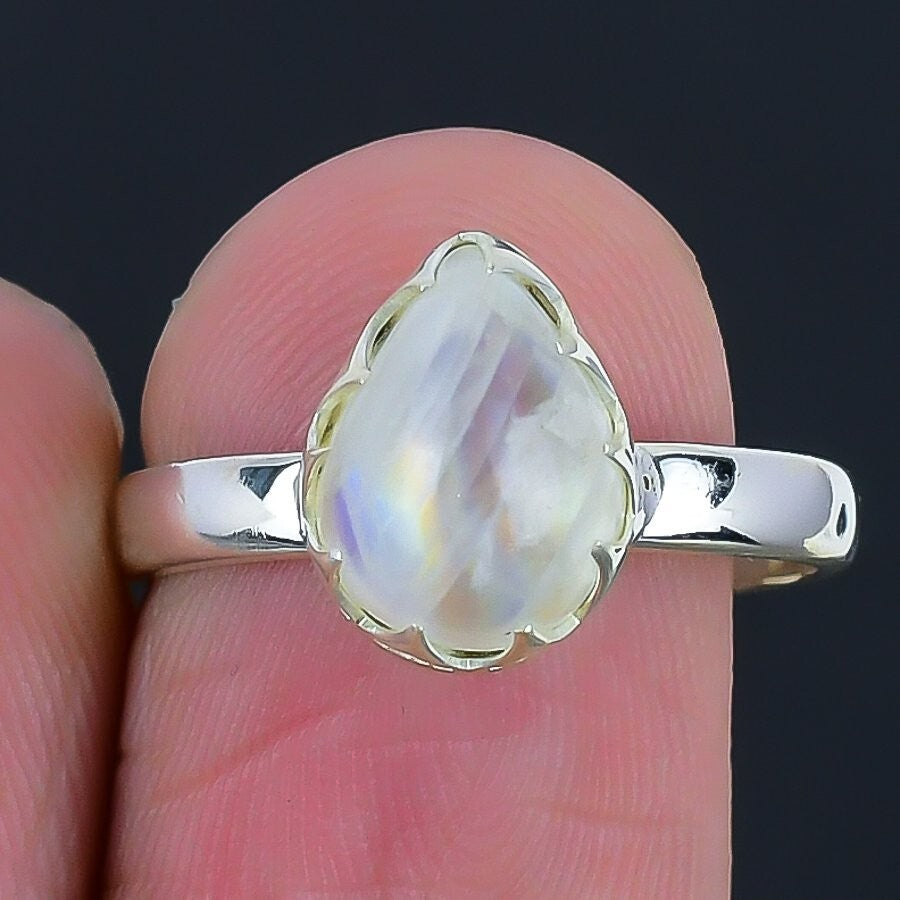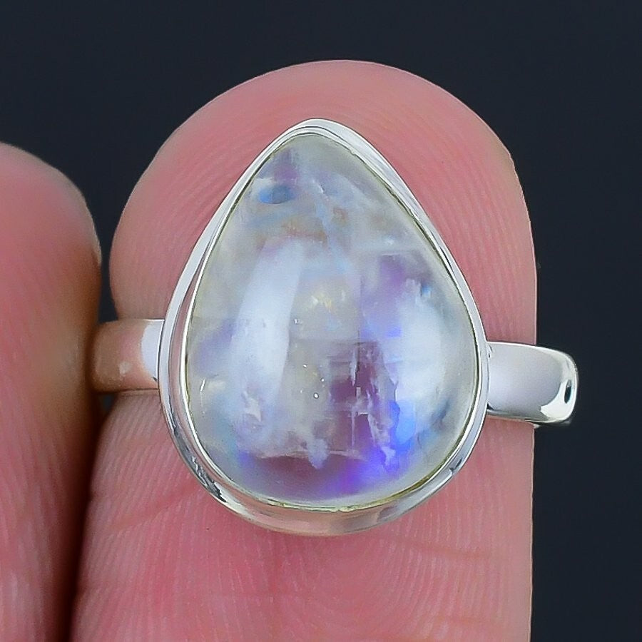Rainbow Rainbow Moonstone Gemstone Wife Cluster Birthday Ring Size 8 925 Silver