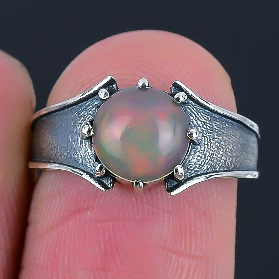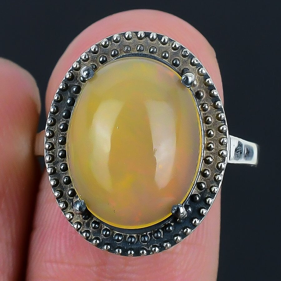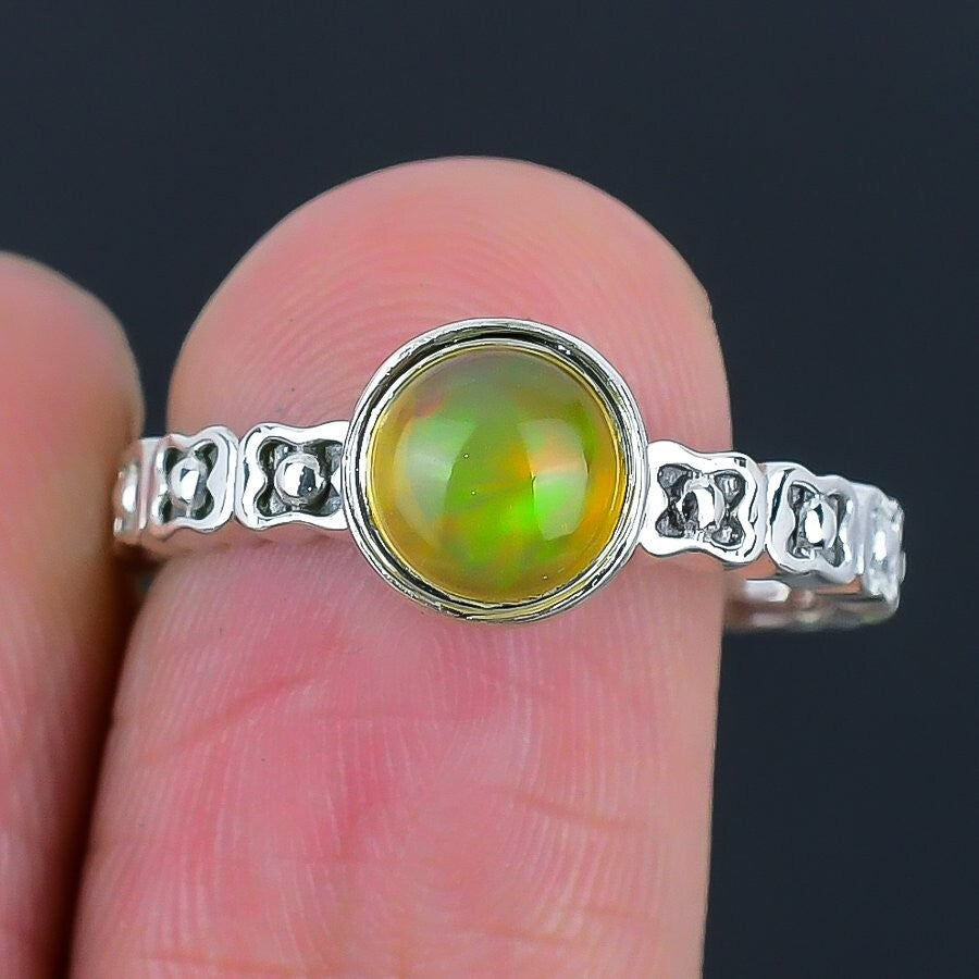 Ethiopian Opal Stone Sterling Silver Mother Cluster Anniversary Boho Ring Size 9
