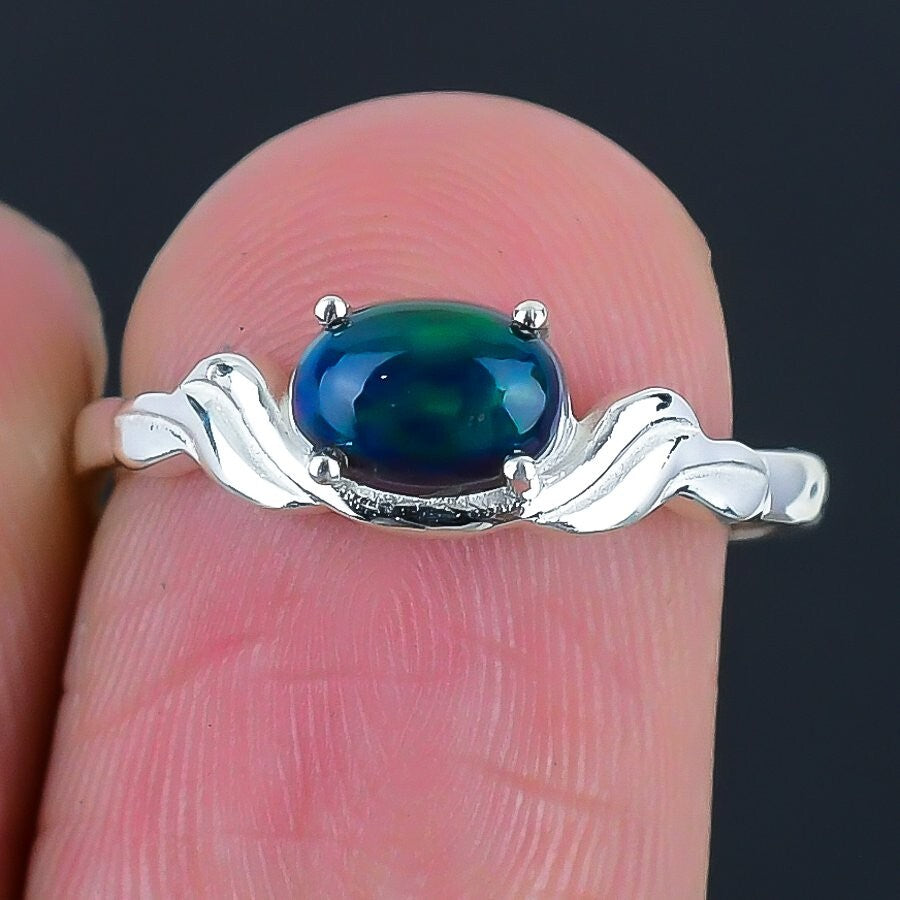 Ethiopian Opal Stone 925Ā SolidĀ Silver Memorial Day Mother Cluster Ring Size 6